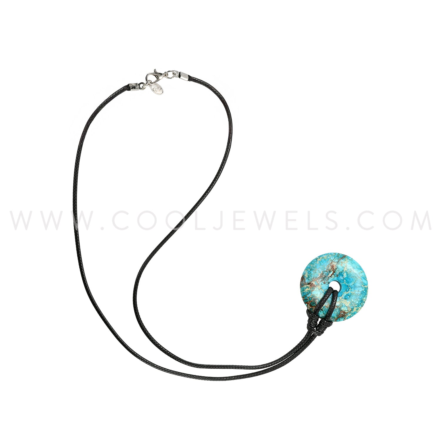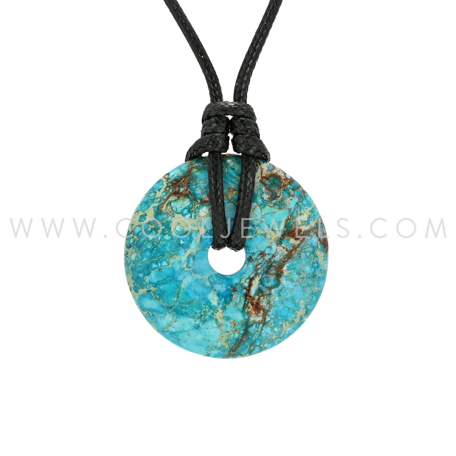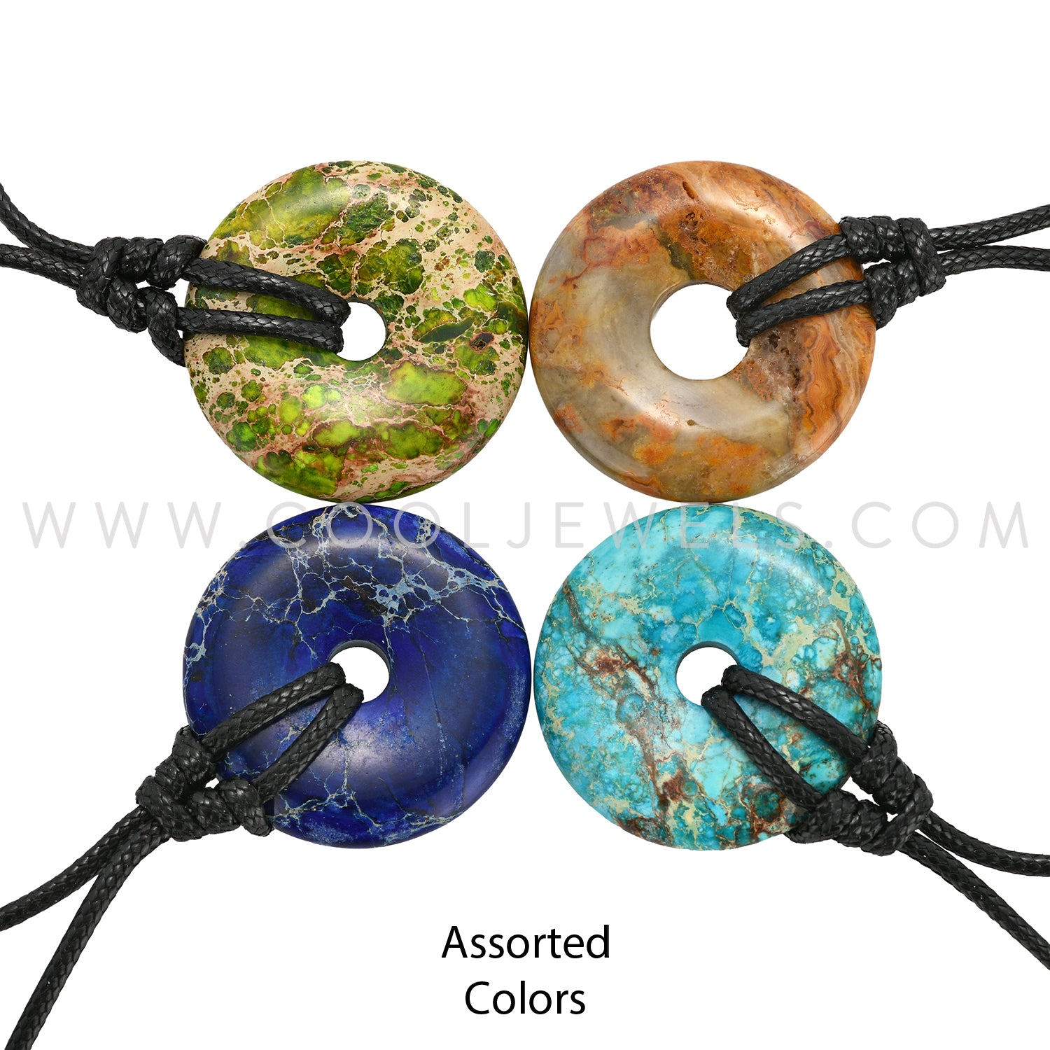 BLACK CORD NECKLACE WITH STONE DONUT PENDANT ASSORTED - CARDED