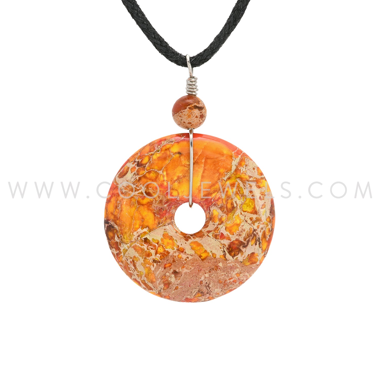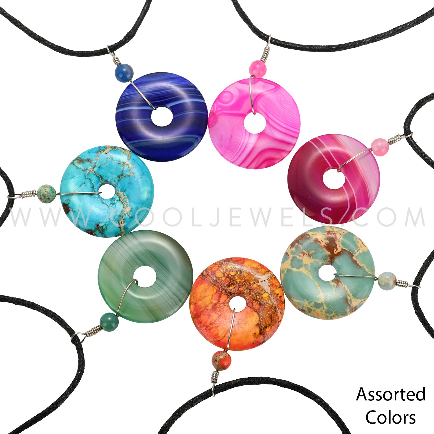 BLACK CORD NECKLACE WITH STONE DONUT PENDANT ASSORTED - CARDED