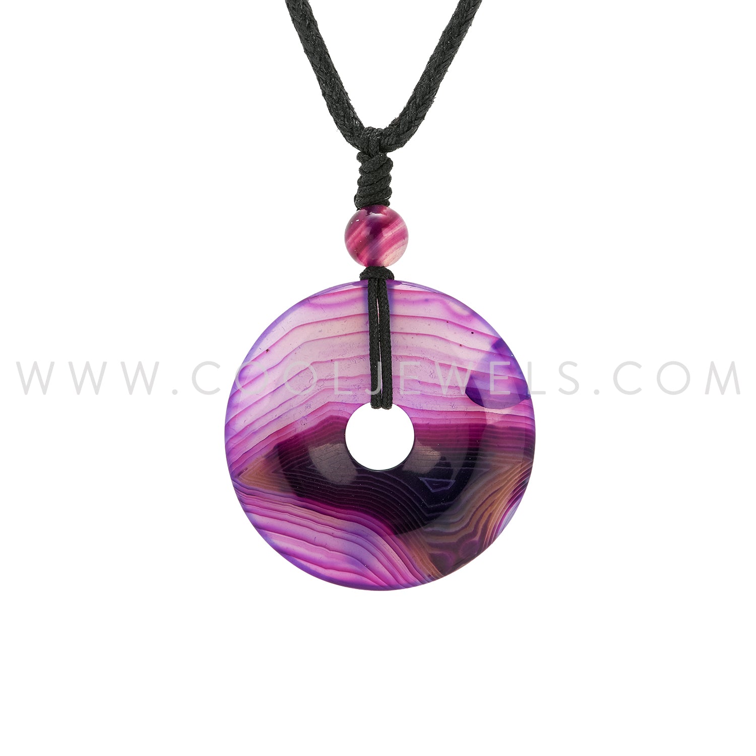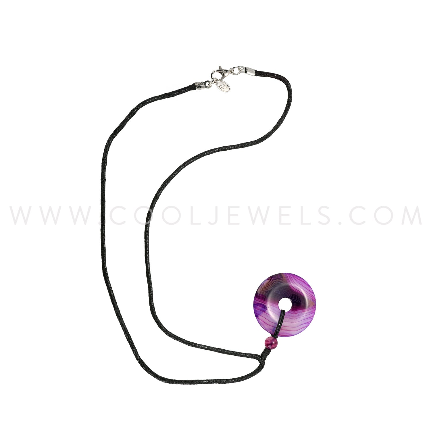 BLACK CORD NECKLACE WITH STONE DONUT PENDANT ASSORTED - CARDED