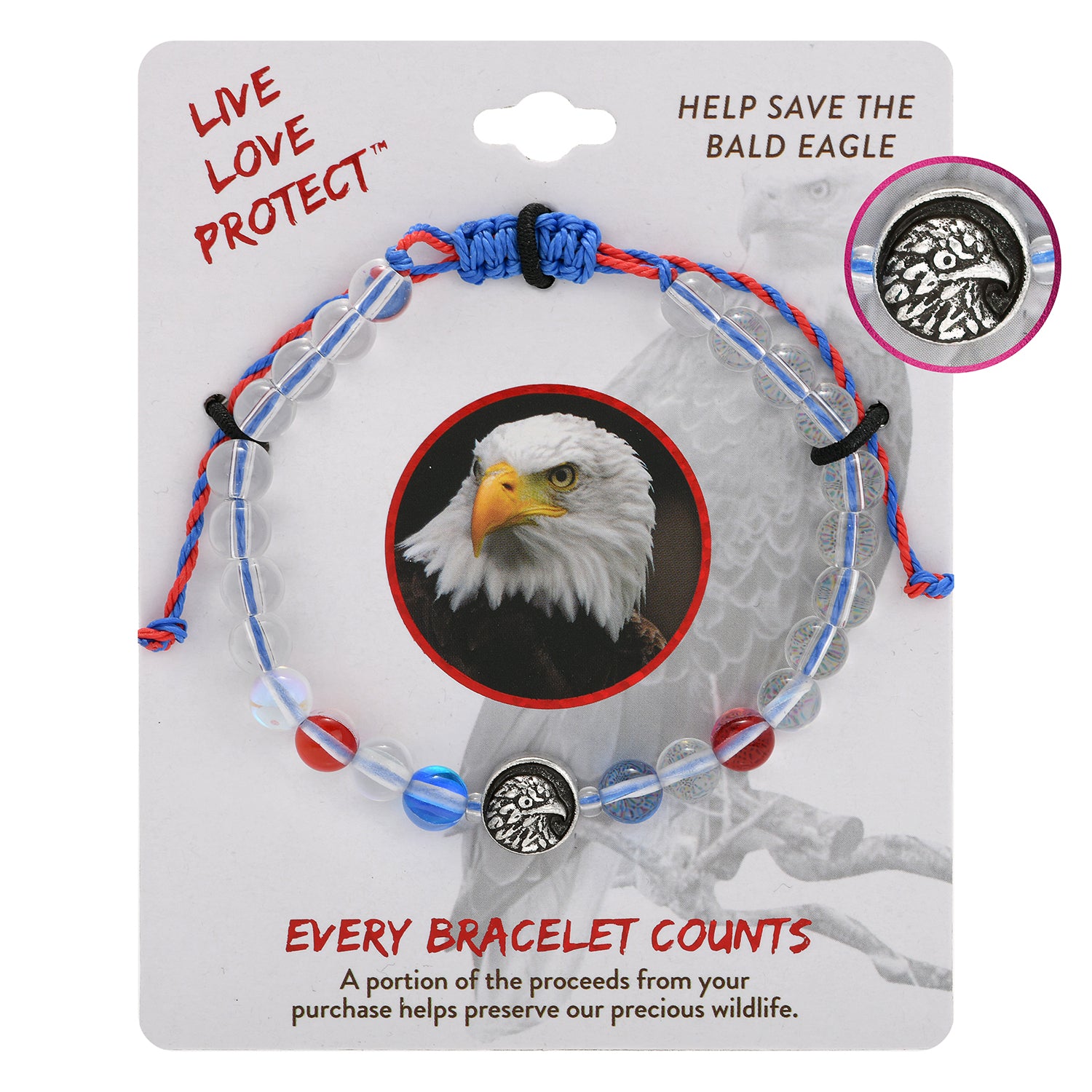 Tan Slider Cord Bracelet with Bald Eagle and Glass Beads.
