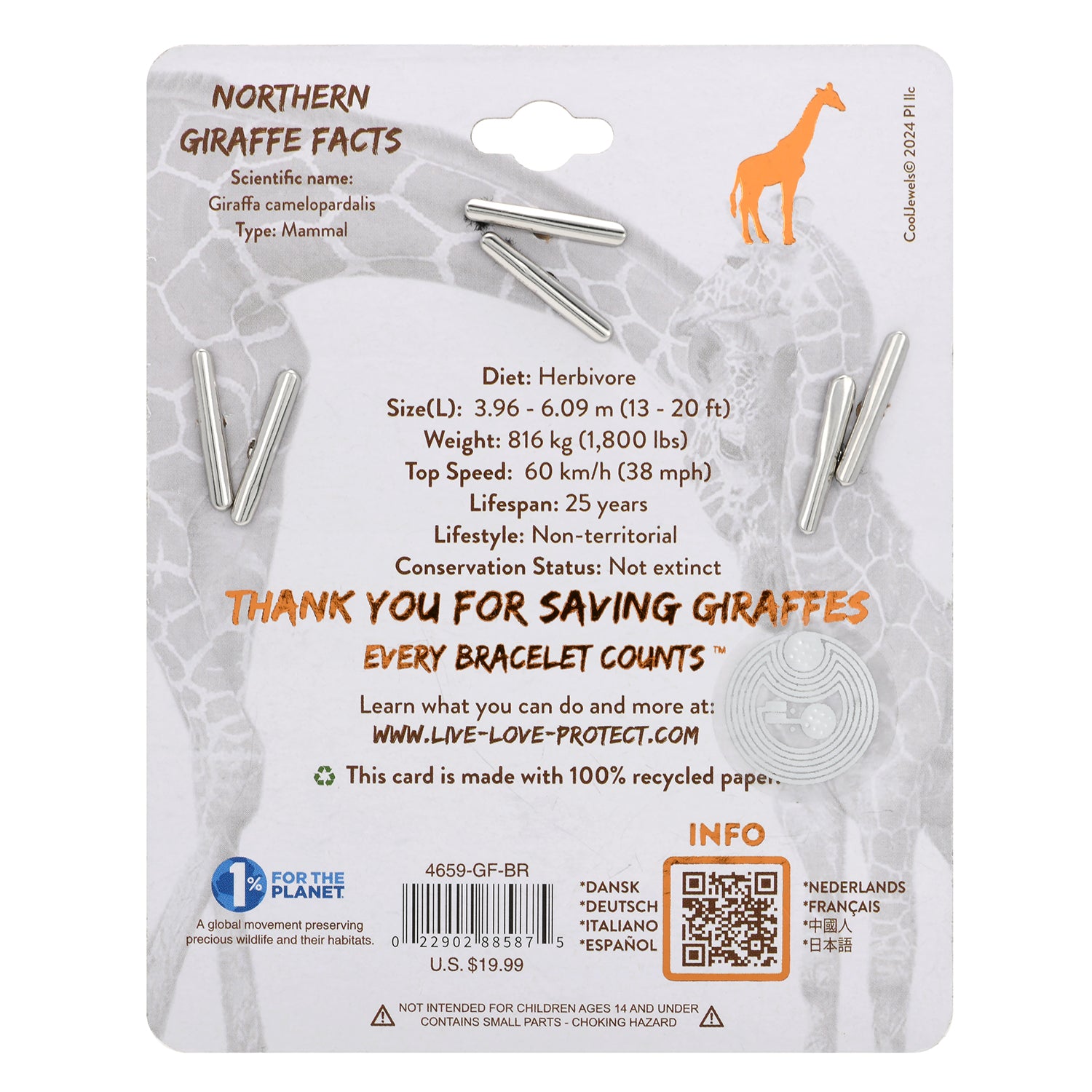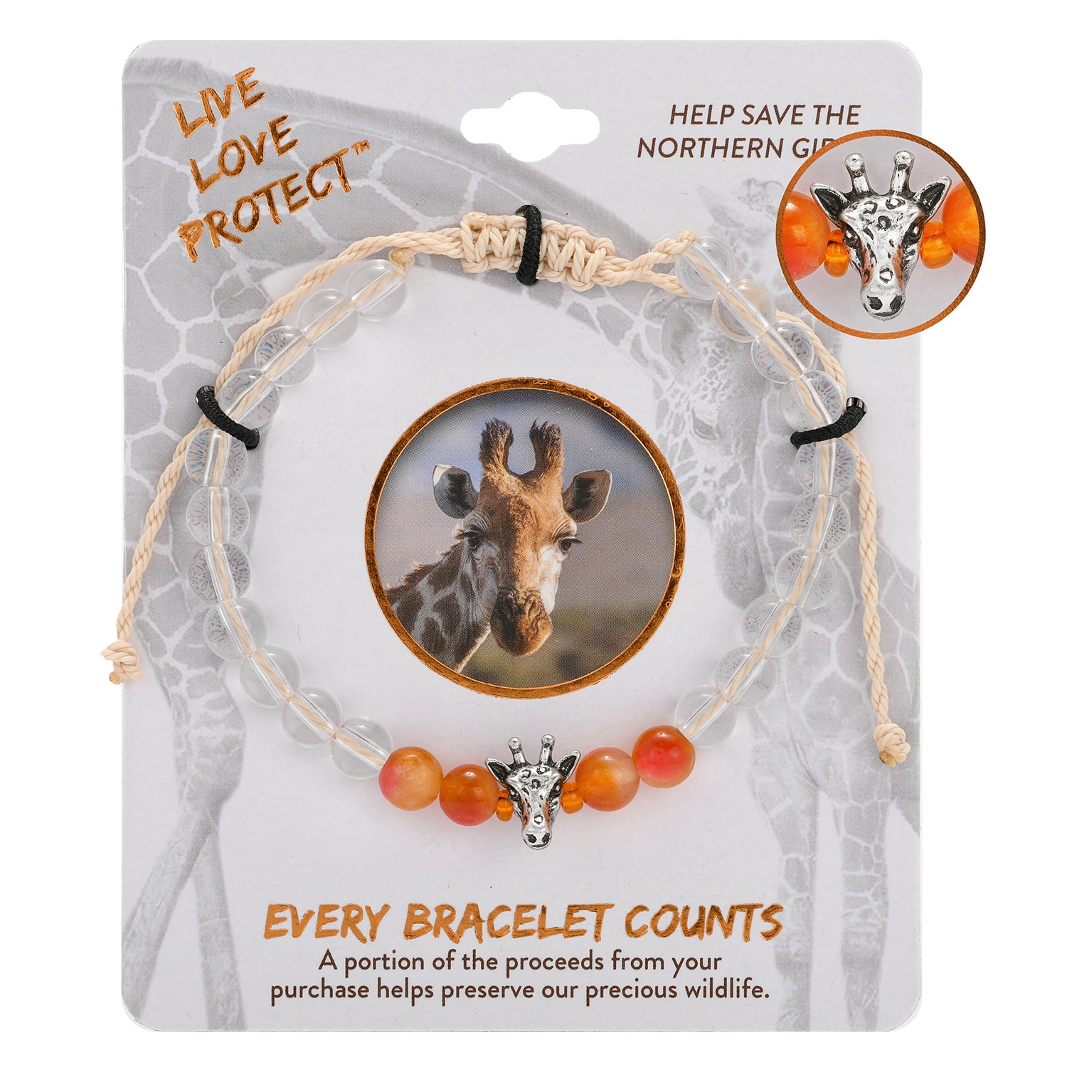 Tan Slider Cord Bracelet with Giraffe and Glass Beads.