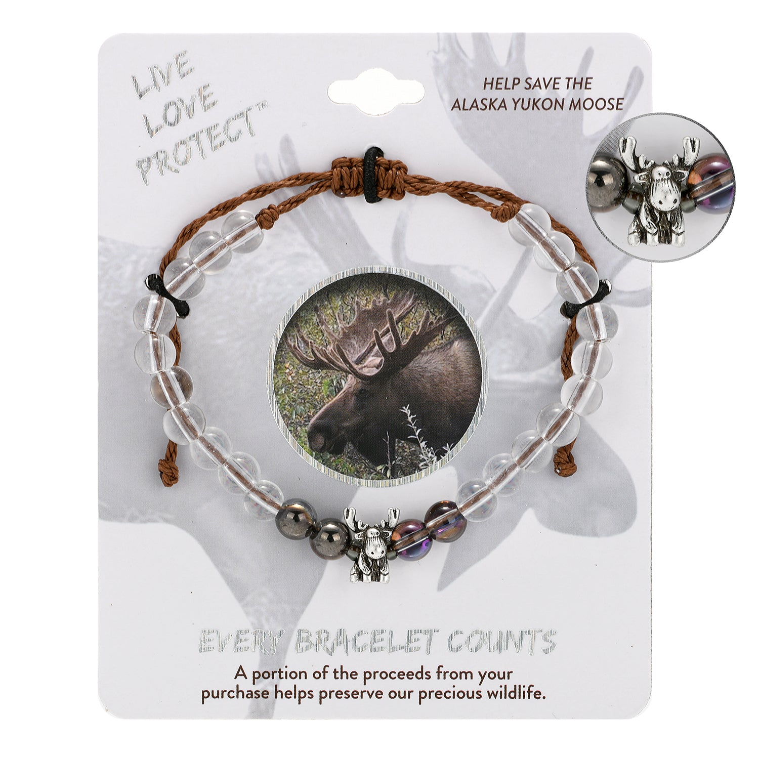 Tan Slider Cord Bracelet with Alaska Yukon Moose and Glass Beads.