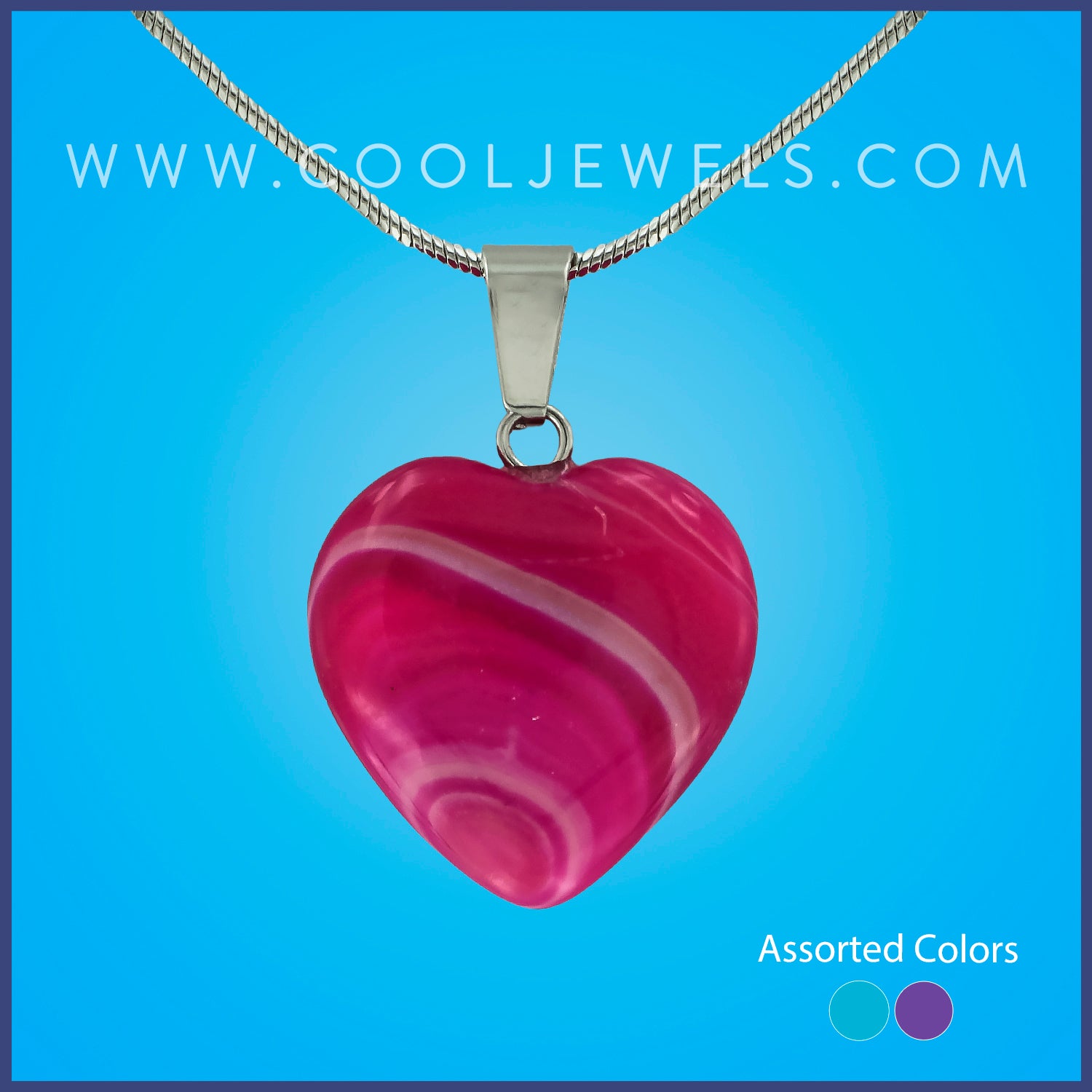 SILVER SNAKE CHAIN NECKLACE WITH STONE HEART - ASSORTED