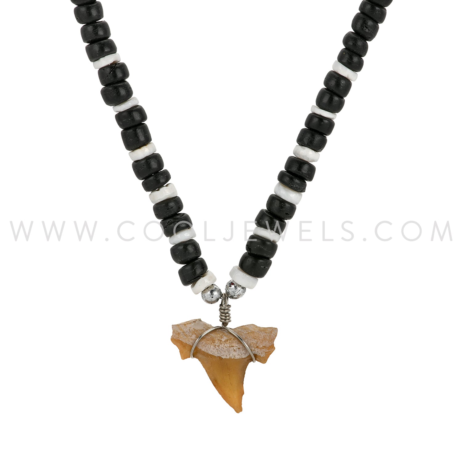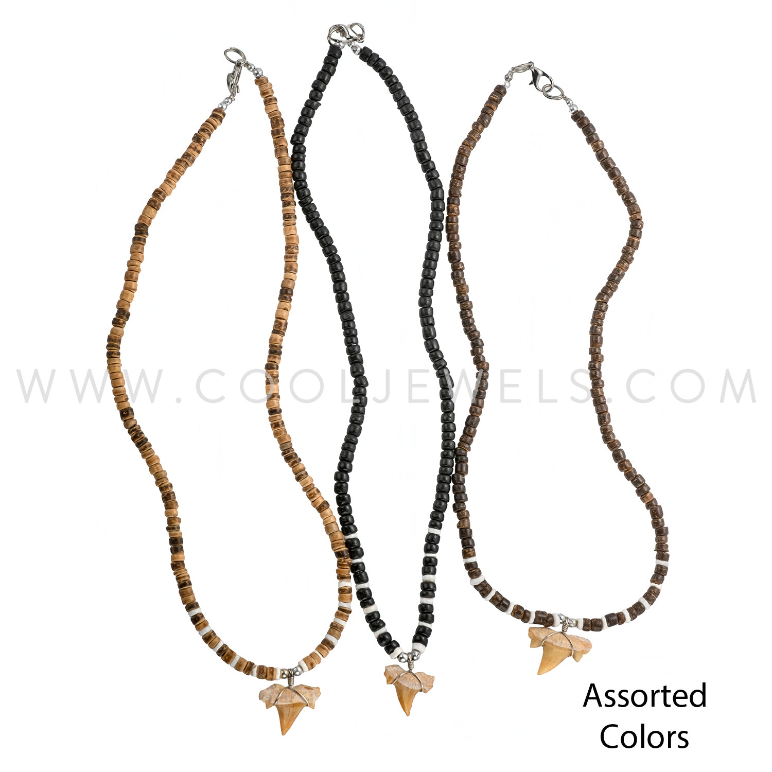 COCO BEAD NECKLACE WITH IMITATION SHARK TOOTH PENDANT - ASSORTED