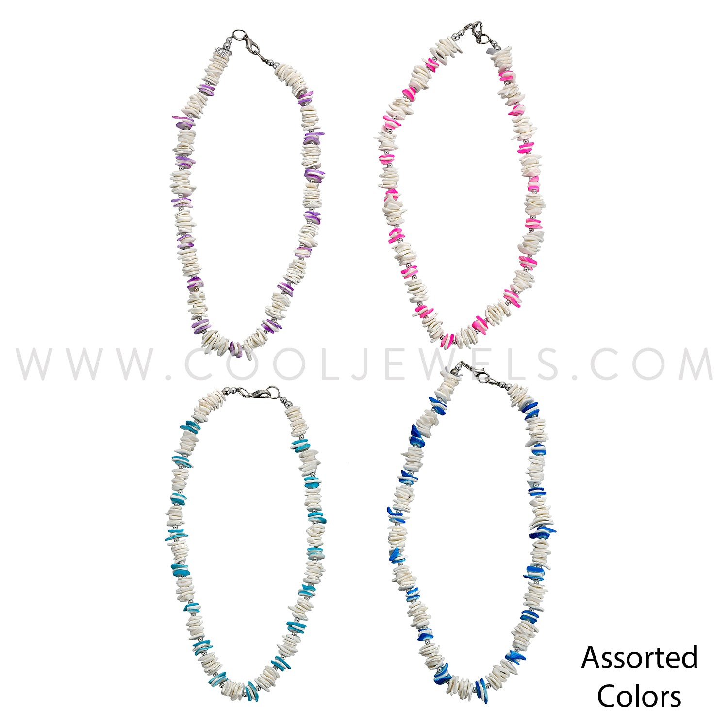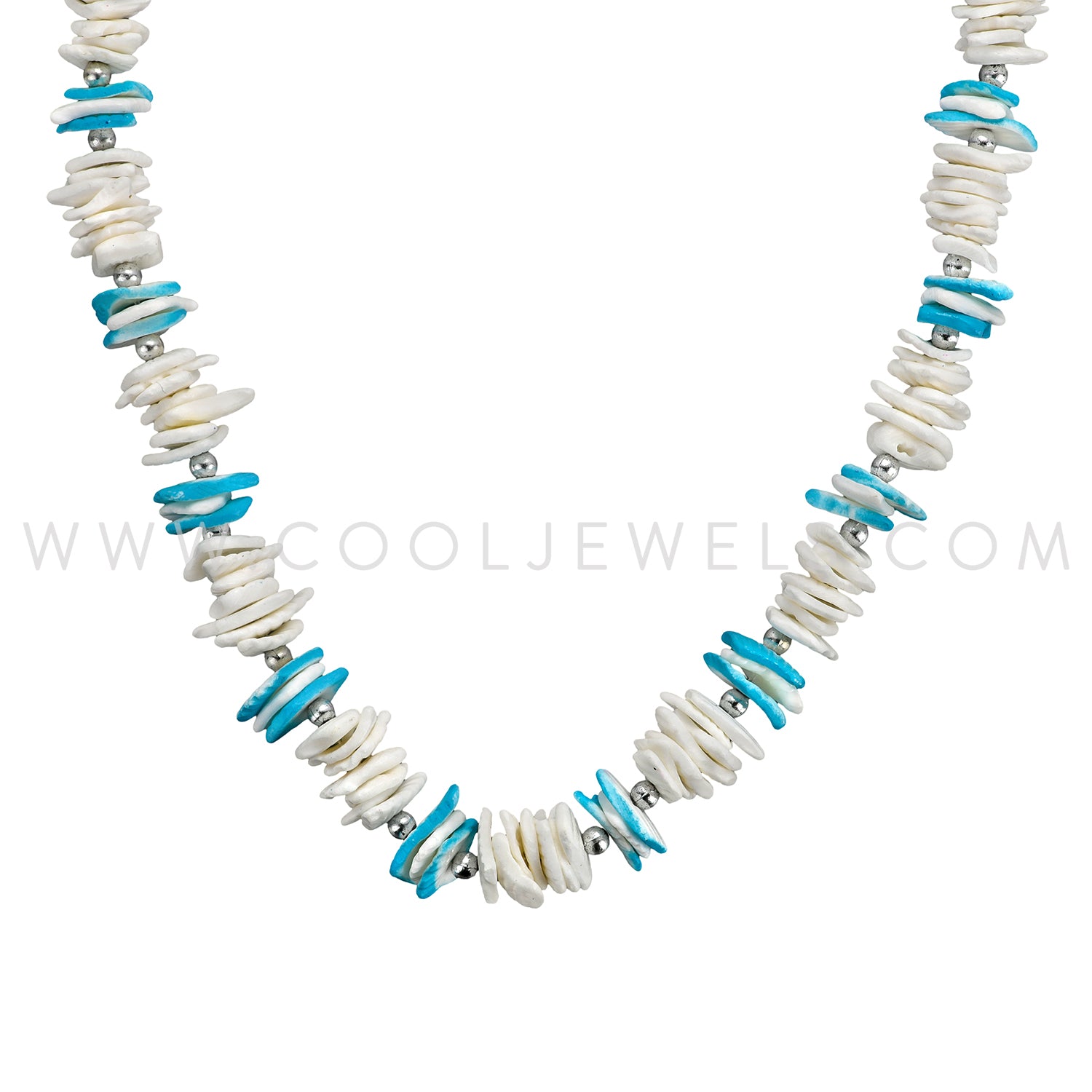 SHELL CHIP NECKLACE WITH SILVER BEADS - ASSORTED